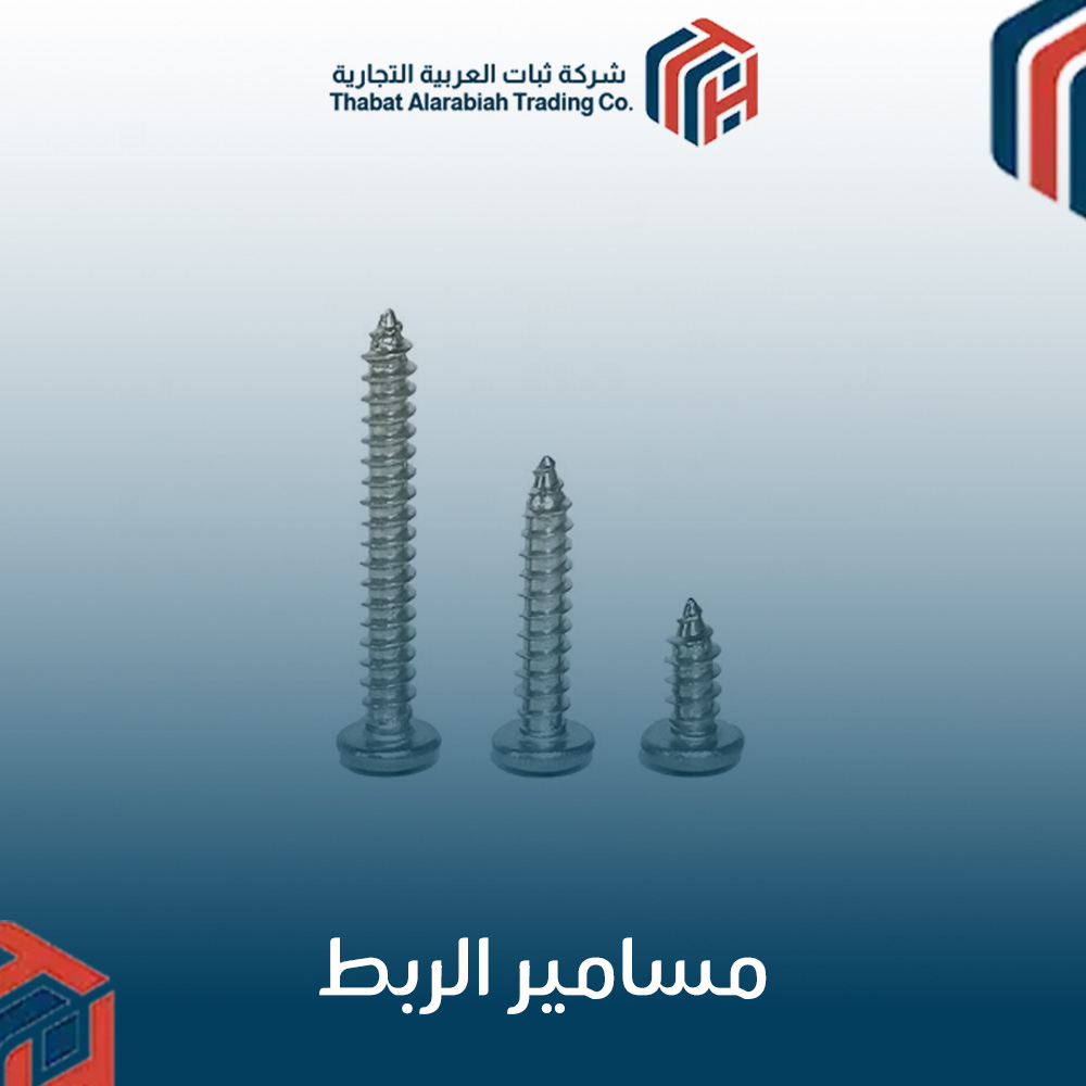 نقدم لك شركة ثبات العربية التجارية أفضل شركة في المملكة العربية السعودية متخصصة في بيع كل ما تحتاجه من مستلزمات البناء والتثبيت بجودة عالية وأسعار منافسة لغيرها من الشركات الأخرى، كما تقوم شركتنا بتوفير أجود أنواع ومقاسات مسامير الربط التي نحتاجها في حياتنا اليومية بشكل مستمر.